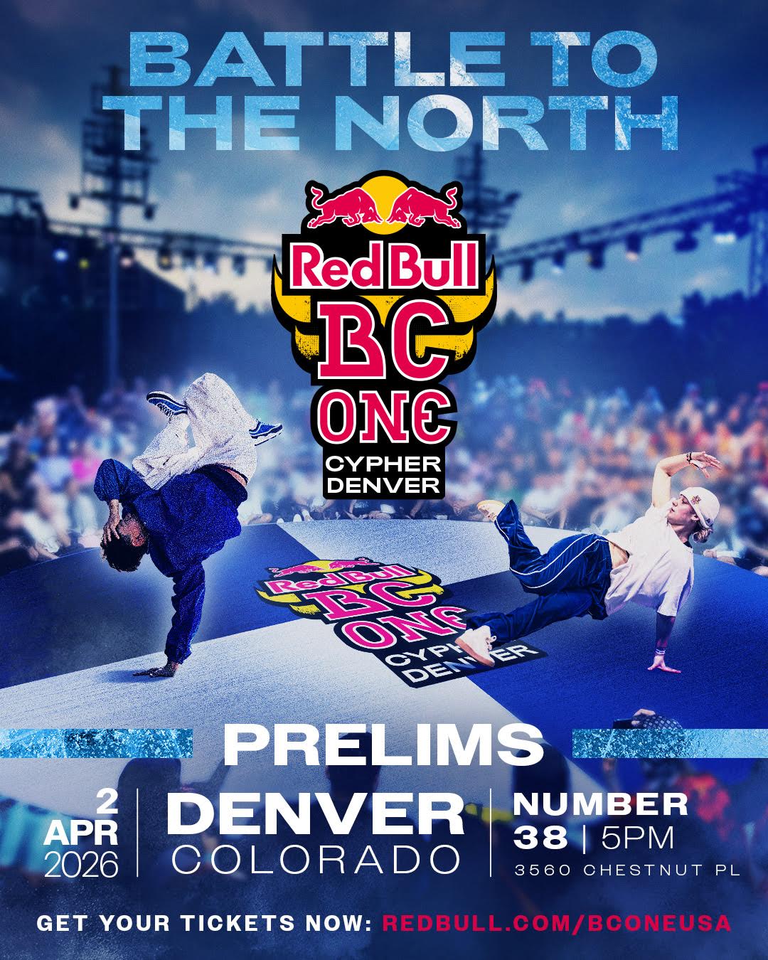 We're excited to host the official Red Bull BC One Cypher Denver prelims at Number 38! Join us on April 2nd, as bboys and bgirls from all over descend on the Mile High City for their chance to move on to the regional cypher the following night. Doors at 5, Prelims start at 6!