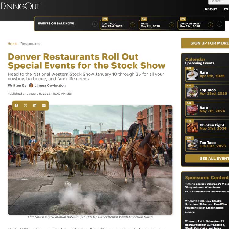 It’s the 140th anniversary of the National Western Stock Show, and restaurants, bars, and eater-tainment spots all over the city are gearing up for the fun. While professionals ride bulls and showcase their horse training skills, chefs will be making special burgers, barbecue platters, and cocktails to commemorate the occasion. Read on for a list of events and specials you can find all around the Mile High.